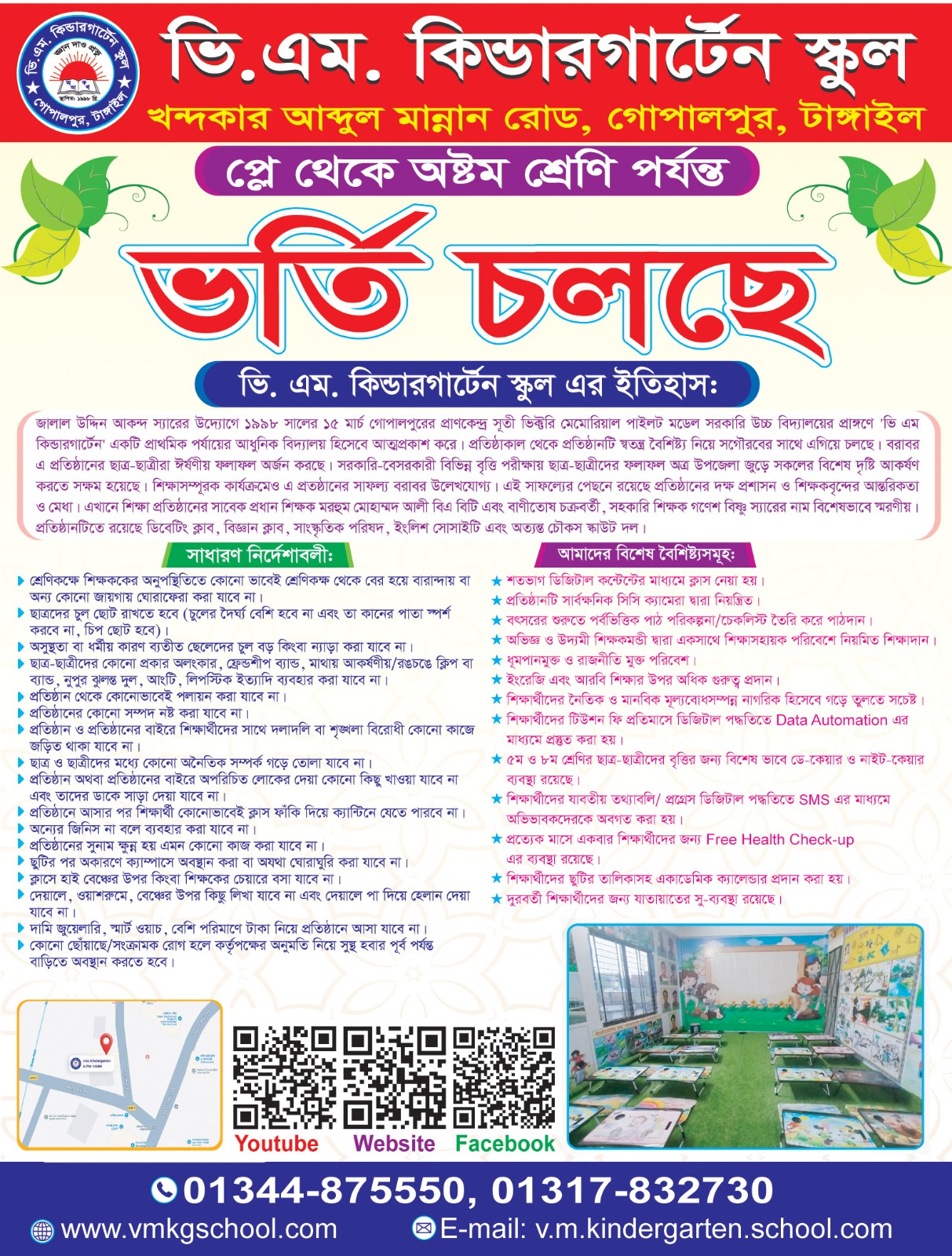 সুশিক্ষা একটি জাতির মেরুদণ্ড। মানসম্পন্ন শিক্ষার আলোকে সৎ, নৈতিক ও জ্ঞানসমৃদ্ধ প্রজন্ম গড়ে তোলার লক্ষ্যেই ভি.এম. কিন্ডারগার্টেন স্কুল প্রতিষ্ঠিত হয়েছে। প্রতিষ্ঠালগ্ন থেকেই এ প্রতিষ্ঠান এলাকার শিক্ষার্থীদের মাঝে আধুনিক শিক্ষার সমন্বয়ে আলোকবর্তিকা ছড়িয়ে যাচ্ছে।